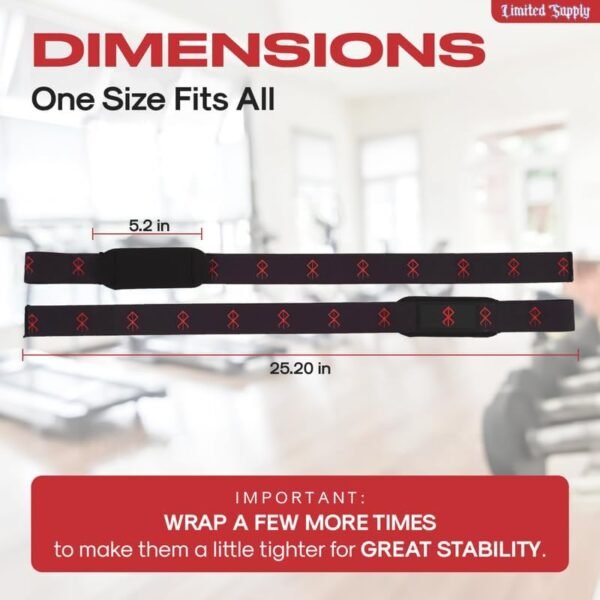 Each strap measures approximately 25 inches, allowing you to wrap around the bar 1–2 times for a secure hold and added grip stability during heavy lifts.