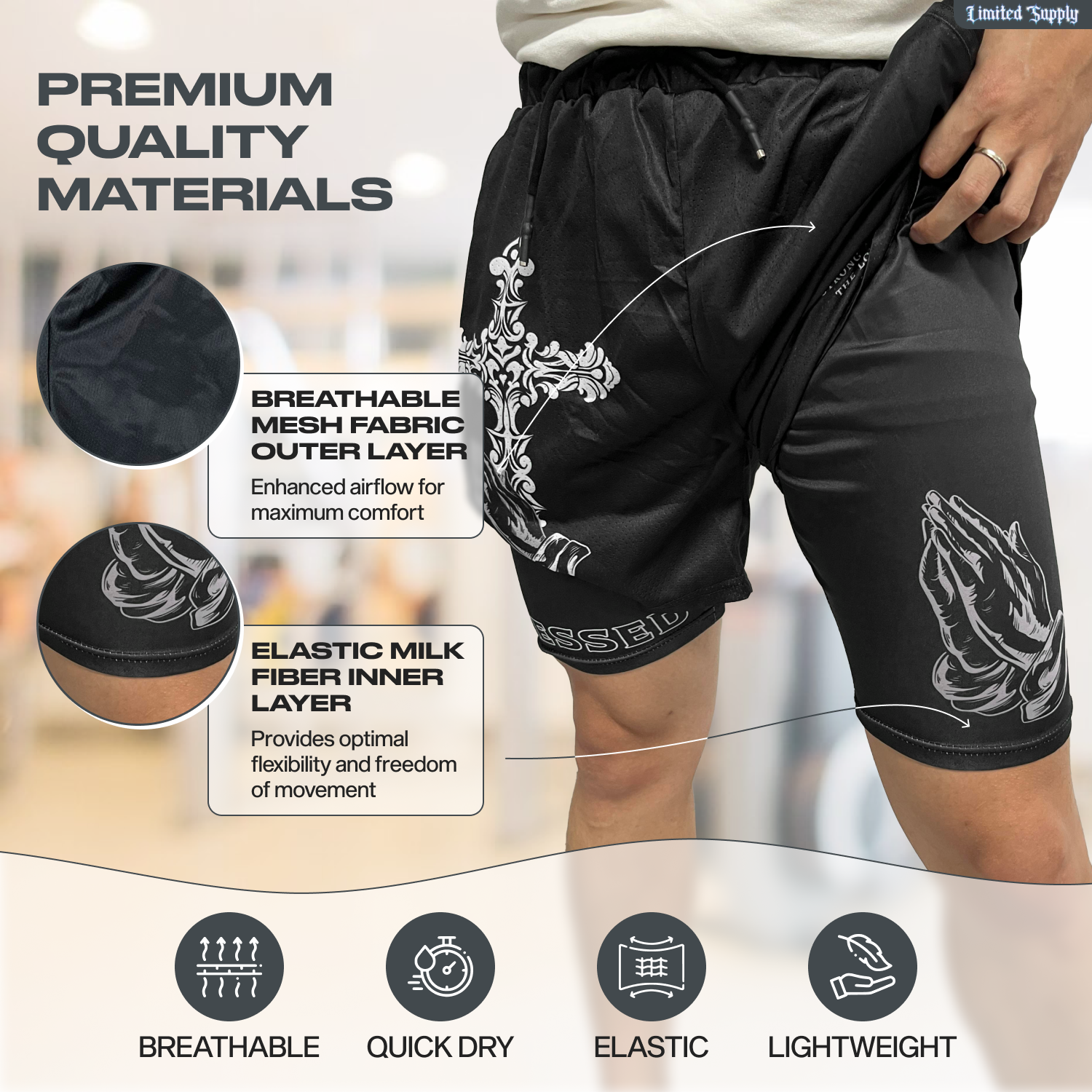 Get ready to take your physical activities to the next level with your workout shorts. The elastic built-in compression tights are crafted with a stretchy and smooth fabric, boosting your performance and ensuring greater flexibility for a wide range of movements.