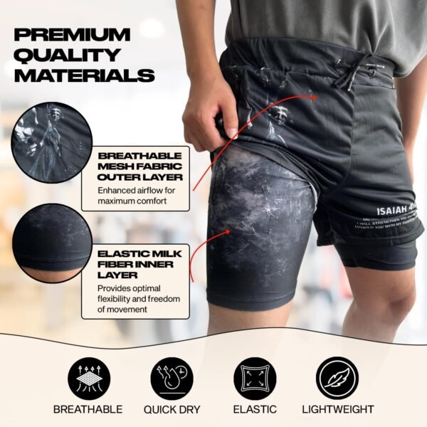 🩳 OPTIMAL COMFORT & FLEXIBILITY: The durable compression shorts are designed to enhance overall performance. Its super-elastic, built-in compression provides unrestricted mobility and support to your thigh muscles, allowing you to move with ease and confidence. 🍃 BREATHABLE WORKOUT SHORTS: Made of  polyester fabric, the outer layer allows air to circulate freely, keeping you dry and cool even during intense activities. It efficiently absorbs sweat, keeping you fresh, comfortable, and focused on your performance. 💎 ELASTIC & LIGHTWEIGHT: Crafted from stretchable milk fiber, its inner layer provides a flexible and supportive fit. Its velvety softness gives you comfort while gently embracing your thighs. 🧵 ADJUSTABLE DRAWSTRING: Its loose-fitting design provides a customized fit, allowing you to adjust the waistband according to your preference and comfort level. Select your ideal size based on the size chart for accurate measurements. 🎁 CONVENIENT STORAGE: The soft outer pockets are 6-inch wide, allowing you to keep your essentials, while the inner pocket accommodates most phones securely. Plus, it has a built-in towel holder, allowing you to conveniently hang your towel while you exercise or engage in sports. “Upgrade your athletic wardrobe with an ANIME COMPRESSION SHORT. Whether you’re hitting the gym, going for a run, lounging at home, or seeking a unique gift for an anime enthusiast, it will be your companion for style, comfort, and functionality. PRODUCT SPECIFICATIONS: ✅ OUTER LAYER: POLYESTER FABRIC ✅ INNER LAYER: MILK FIBER ✅ OUTER POCKETS – 6 INCH WIDE ✅ INNER POCKET ✅ TOWEL HOLDER ✅ ADJUSTABLE DRAWSTRING Indulge in a bundle of athletic shorts for men and women. With the adjustable drawstring, you can enjoy a comfortable fit that stays in place during your active moments. Double-check your measurements and review the size chart for a perfect fit. Get ready to take your physical activities to the next level with your workout shorts. The elastic built-in compression tights are crafted with a stretchy and smooth fabric, boosting your performance and ensuring greater flexibility for a wide range of movements.